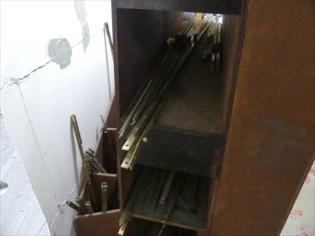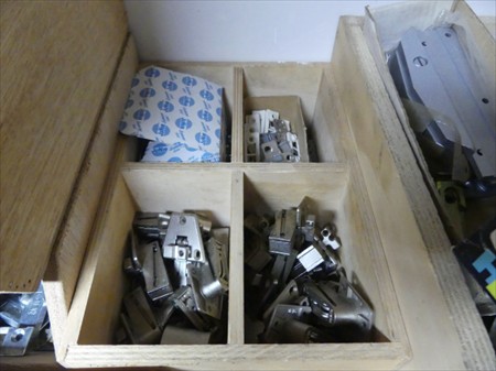 Quincaillerie pour porte coulissante Le contenu de l'étagère et 1 bac en bois Remarques : Visite conseillée