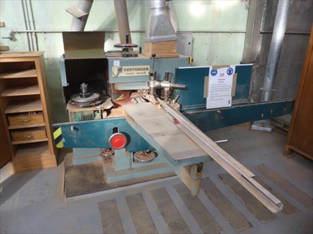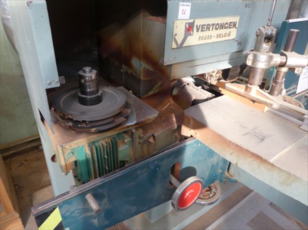 Tenonneuse Marque : Vertongen Tension : 230V triphasé Longueur : 270 cm Largeur : 210 cm Hauteur : 130 cm État : Non Testé Inclus : Accessoires
