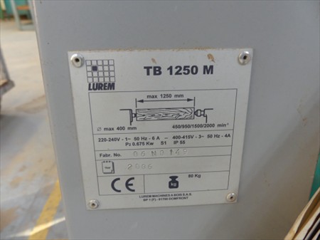 Tour à bois Marque : Lurem Modèle : TB1250 Année : 2006 Tension : 230V Mono Longueur : 180 cm Largeur : 105 cm Hauteur : 135 cm État : Non Testé