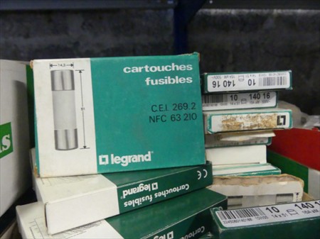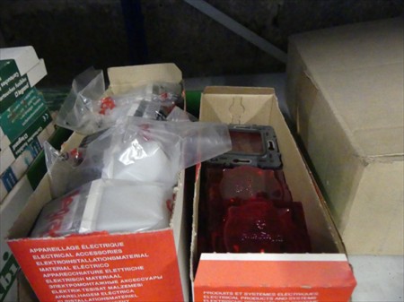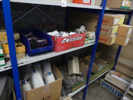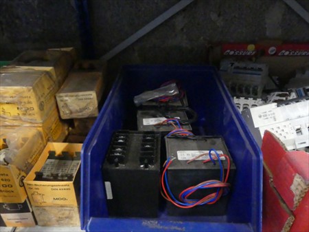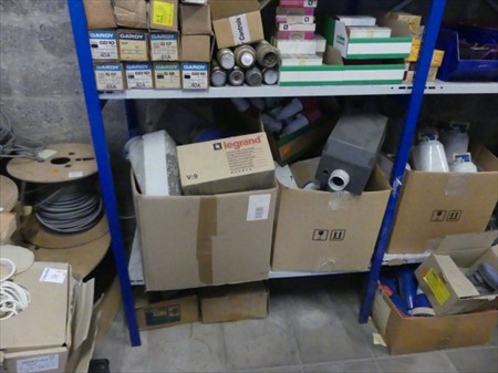 Fiches 230V/400V, coffret électrique, disjoncteurs, etc. Le contenu de 2 ranges d'étagères Non Inclus : Etagères Remarques : Visite conseillée