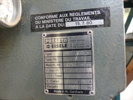 Cisaille à Quincaillerie Marque : Eisele Modèle : HPS100 Année : 1989 État : Non Testé