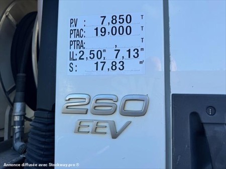 HYDROCARBURE VOLVO FE 260 EEV Année : 07/05/2014 310 298 KMS, Kilométrages d'origine affiché au compteur Poids à vide : 7T850 PTAC : 19T l x L : 2.50m x 7.13m BOITE SEMI-AUTOMATIQUE Equipement MAGYAR Cuve de 13 000 litres en 4 compartiments : 1) 2000 l 2) 4000 l 3) 4000 l 4) 3000 l Compteur volumétrique ALMA valide Imprimante permettant d'éditer le bon de livraison de la distribution Contrôle technique, attestation contrôle citerne et certificat d'agrément valides Pour plus de renseignements merci de nous contacter au 06.17.29.20.50 Cordialement GOVIN Stéphane
