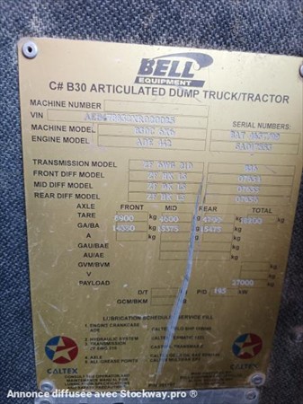 Articulated Dumper Truck BELL B30C 6x6: Year : 1999 18500 hours Good operating condition