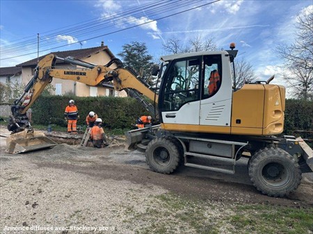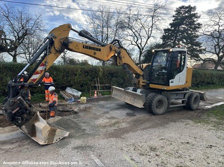 Pelle à pneus LIEBHERR type A912 Compact Année : 2014 Heures : 11700 Poids : 14 t Flèche à Volée variable + déport pied de flèche Lame + stabilisateurs Longueur en transport : 8.55 m - Largeur en transport : 2.55 m - Hauteur en transport : 3.13 m Moteur Deutz TCD3.6 L4 (80 kW) Lignes hydrauliques Coupleur OILQUICK + Tiltrotateur OILQUICK + godets