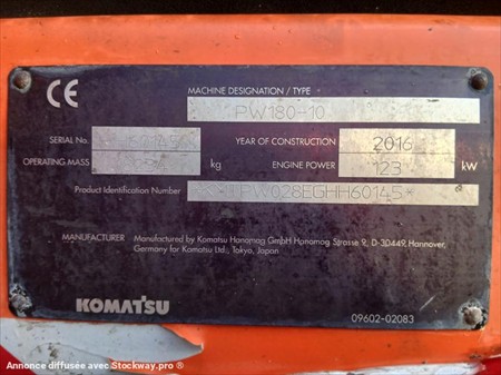 PELLE SUR PNEUS KOMATSU PW180 KOMATSU