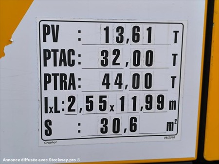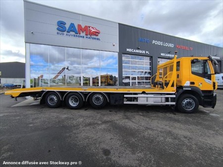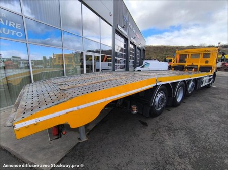 Dépanneuse, depanneuse, dépanneur, depanneur Marque : Iveco 8x2 Modèle : STRALIS 420 1ère mise en circulation : 18/01/2019 Kilométrage : 115767 kms au compteur Porte engins Empattement : 4.70m Capacité 18 Tonnes PV : 13.48 Tonnes PTAC : 32.0 Tonnes PTRA : 44.0 Tonnes Puissance : 420 CH Boîte automatique Energie : GO Siège suspendu Suspension mécanique av Et suspension pneumatique ar Plateau JOCQUIN Dimensions : L : 10.70m, largeur 2.55m Treuil Casquette Boule d’attelage Pneus AV 315/70R22.5 Pneus AR 315/70R22.5 Avec 2ème essieux relevable Matériel en très bon état !