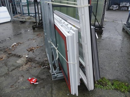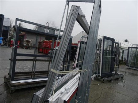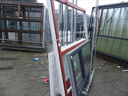 Châssis PVC Quantité : +- 2 Non Inclus : Chevalet de Transport 1 x châssis ouvrant oscillo-battant + partie fixe Avec vitrages Intérieur blanc Extérieur anthracite Dimensions : 89x209 cm 1 x châssis double porte vitrée ouvrant-battant sans vitrage Intérieur blanc Extérieur noir Dimensions : 186x217 cm
