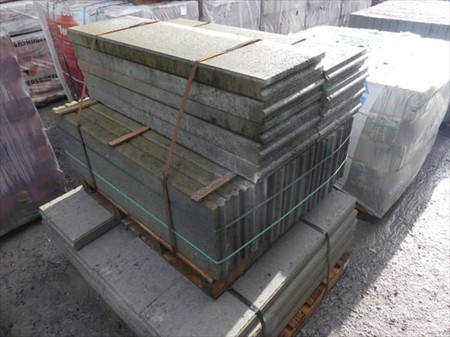 Bordures béton 100x30x6 cm Modèle : Gris béton Longueur : 100 cm Largeur : 6 cm Hauteur : 30 cm Quantité : +- 40 Quantité approximative Lot réparti sur 2 palettes