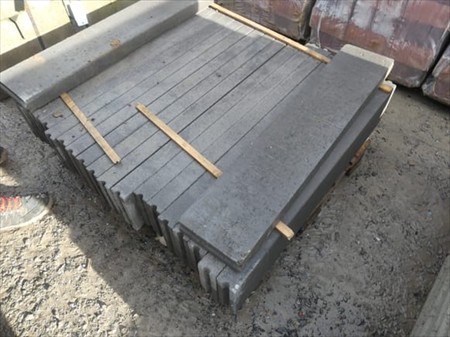 Bordures béton 100x20x6 cm Modèle : Gris foncé Longueur : 100 cm Largeur : 6 cm Hauteur : 20 cm Quantité : +- 20 Quantité approximative Lot réparti sur 1 palette
