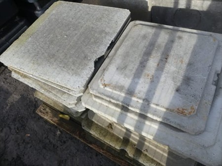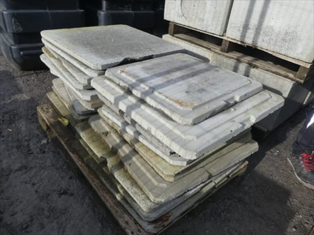 Couvercles béton pour chambres de Visites Quantité : +- 20 Composition : +- 12 x (70x70 cm) +- 8 x (57x57 cm) Lot réparti sur 1 palette