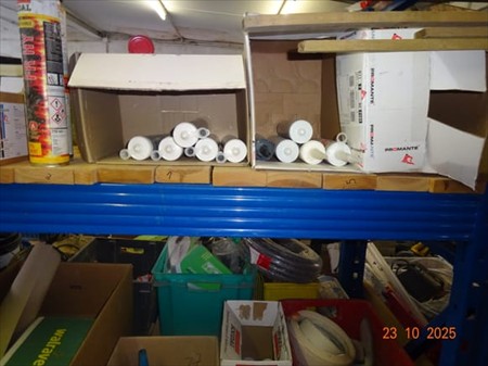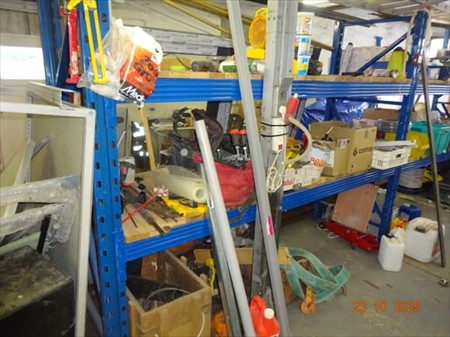 1étagère bleue dim. : 5m20 long x 2m haut et son contenu dont