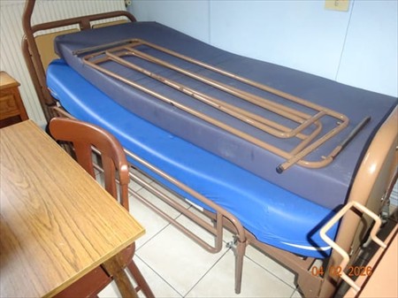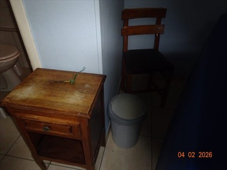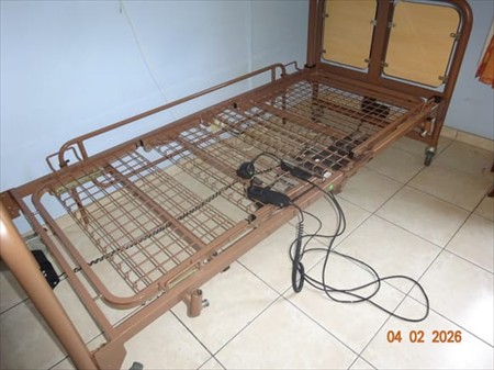 1 fauteuil en skaï 3 matelas 2 lits électriques sur roulettes 90/200 têtes et pieds réglables 1 lit électrique sur roulettes 90/200 replié 1 lit replié (sans Moteur) 1 table 2 chaises 1 fauteuil sur roulettes en skaï 3 tables de nuit L' Ensemble de deux lits en bois, démontés 1 poubelle en PVC rouge L' Ensemble de la pièce doit être vidé