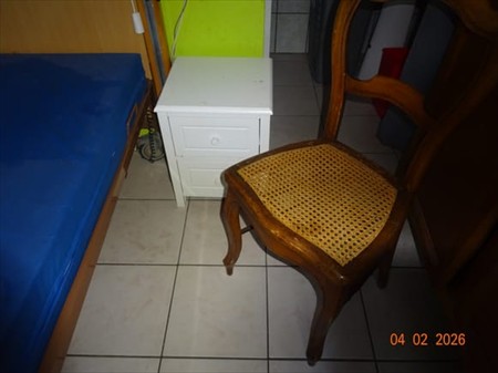 1 petit meuble deux portes un tiroir 1 petit fauteuil de Couleur gris 1 table 2 garde-robes deux portes 2 tables de nuit blanches à deux tiroirs 2 lits électriques têtes de lit et pieds en bois dont un Avec perroquet 2 fauteuils L' Ensemble de la pièce doit être vidé