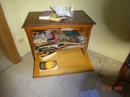1 meuble à rabat Avec un tiroir 2 chaises 1 table 1 garde-robe deux portes 1 matelas 1 table de nuit 1 fauteuil en skaï L' Ensemble de la pièce doit être vidé