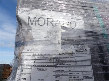 Briques Marque : Wienerberger Modèle : Morado Longueur : 21,5 cm Largeur : 10,5 cm Hauteur : 6,5 cm Quantité : +- 1000 Quantité approximative Lot réparti sur 2 palettes Poids : +- 1300 kg par palette