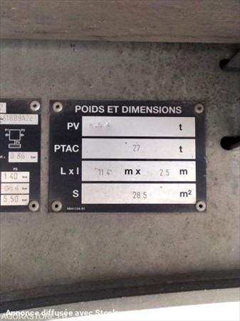 RAS Nombre d'essieux et/ou Type d'essieux 1 essieu directeur Taille des pneumatiques 275/70 R22.5 PV / PTAC / PTRA 6640 / 27000 Echéance de PV des mines 15/07/2026 Type de remorque
