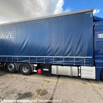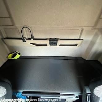 camion vendu avec sa remorque FRUEHAUF - 2 essieux - PTC 19T - MEC : 16/05/2018 porteur carrosserie PLSC réhaussable avec hayon rétractable Dhollandia et coffre à équerres longueur utile 8180 hauteur passage latéral 2850 en position basse et jusqu'à 3450 hauteur hors tout en position basse 4100 pavillon aluminium fixe plancher bois dur massif avec omégas essieu arrière trainé directeur relevable Boite de vitesse TipMatic avec ralentisseur remorque carrosserie PLSC longueur intérieure 7270 hauteur de passage 3050