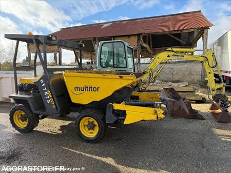 Dumper 4 roues motrices, avancement hydrostatique, 2 gammes vitesse, inverseur électrique. Moteur Lombardini bi cylindre diesel. Benne hydraulique, girabenne. Grande capacité de chargement, lame de chargement pour auto-chargement sable, graviers... Quelques faux contacts électriques, les relais inverseur seraient à remplacer. Idéal pour petite entreprise ou particulier ayant des travaux de terrassement à faire.