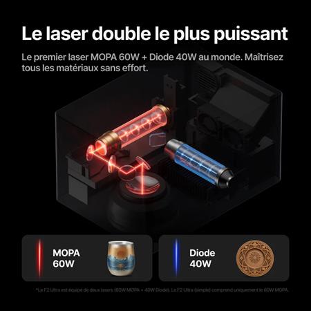 Prix : 6 500 € (Valeur actuelle site : 7 219 €) Économisez plus de 700 € sur une machine sous garantie totale ! Description : Je vends mon laser xTool F2 Ultra Autonome, le nec plus ultra du laser hybride (Fibre 60W MOPA + Diode 40W). C’est la machine parfaite pour ceux qui veulent graver tous les métaux (en couleur !) et découper bois/acrylique avec une précision chirurgicale. Points clés : État strictement NEUF : Déballée, testée pour l'allumage, mais 0 heure de travail. Je la vends car je n'ai finalement pas les compétences techniques pour l'exploiter. Achetée le 08/12/2025 : Elle a moins de trois mois ! La garantie constructeur xTool est donc quasi complète. (Facture d'achat fournie). Double Technologie : Passez du laser Fibre au laser Diode en un clic. Disponibilité immédiate : Pas de frais de douane, pas de délais de livraison de plusieurs semaines. Vous repartez avec aujourd'hui. Pourquoi cette offre ? C'est l'opportunité d'acquérir la machine la plus puissante de chez xTool sans payer le prix fort du neuf, tout en conservant la sécurité de la garantie. Conditions de vente : Prix ferme (ou très légèrement discutable devant la machine). Remise en main propre privilégiée à Paris avec facture Xtool et carton Paiement par virement instantané
