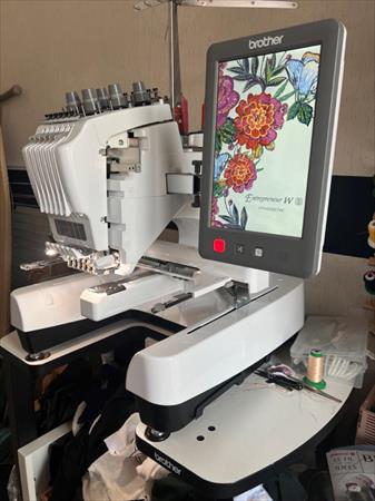 Machine à broder Mono-Tête BROTHER PR680W, 6 aiguilles, Achetée en 2022(servi pour faire de la démonstration), Comme neuve (Seulement 333 heures d’utilisation).La machine est vendue avec: la table support machine, 4 cadres de taillesdifférentes, des fils à broder, des cannettes et des entoilages, ainsi que lelogiciel PE Design 11 (qui permet de broder et tout personnaliser à l'infini). Venduedans son carton d'origine avec une extension de Garantie constructeur de 12mois.