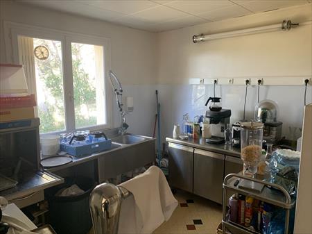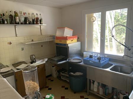 Cuisine professionnelle gaz comprenant : piano, four, table inox, extracteur, congélateur à tiroirs, cave à vin.Laverie. Vaisselle.