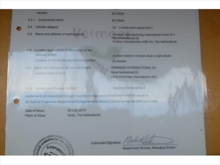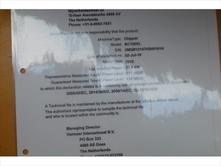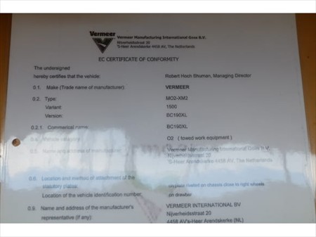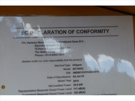 BROYEUR DE BRANCHES VERMEER BC190XL (REF: V3) ( VIN: XM2M12167KB001014(01)) VERMEER