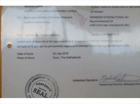 Numéro de châssis : XM2M12167KB001014(01)