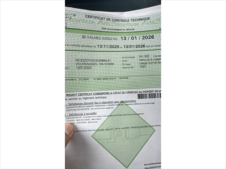 Certificat contrôle technique valable jusqu'au : 13-01-2026