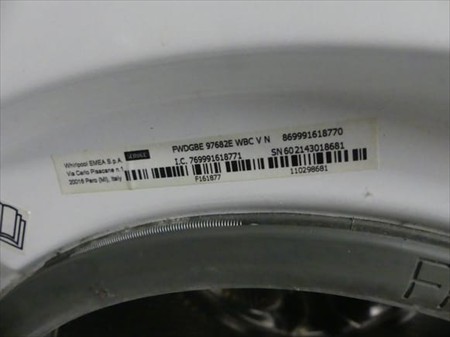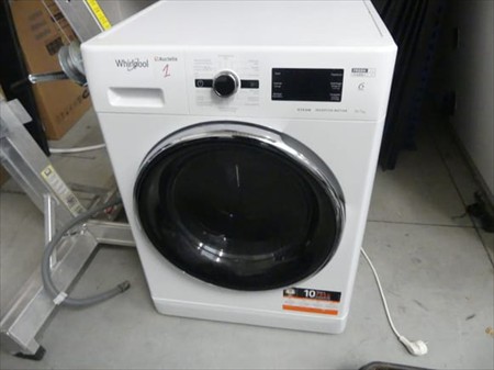 Machine à laver Marque : Whirlpool Modèle : FWDGBE 97682E Tension : 230V Mono Longueur : 65 cm Largeur : 60 cm Hauteur : 85 cm État : Non Testé Combiné lavage et séchage Avec pompe à chaleur intégrée