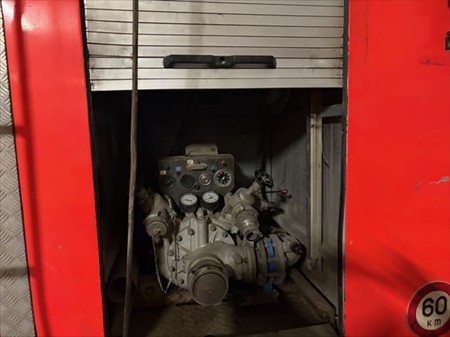 Ancien camion de pompiers - 8000 litres, Equipé d'une pompe Somati. 41.727 km - Véhicule roulant, pompe fonctionnelle - Phare avant gauche cassé et volet arrière cassé Batterie en fin de vie