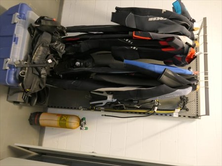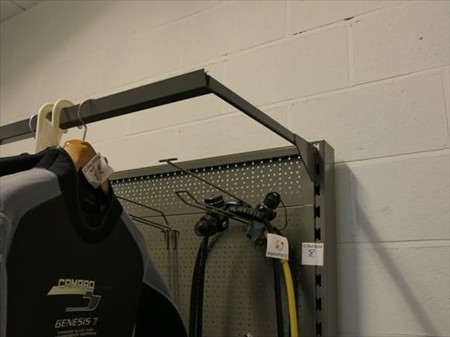 Etagère métallique de magasin Non Inclus : Contenu 1 x Etagère 4 tablettes Dimensions : 100 cm x 60 cm x 210 cm 1 x Etagère 1 tablette Dimensions : 100 cm x 60 cm x 210 cm Remarques : Visite conseillée