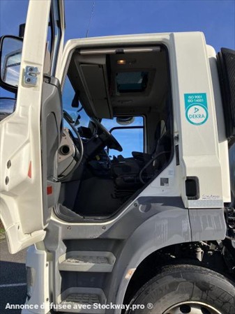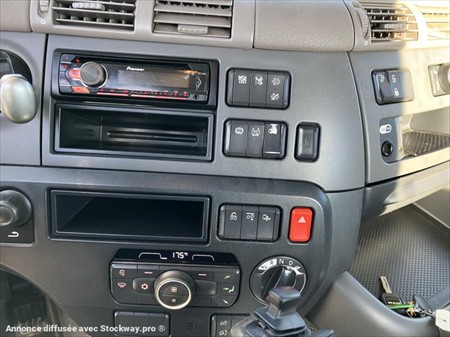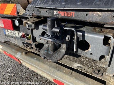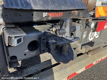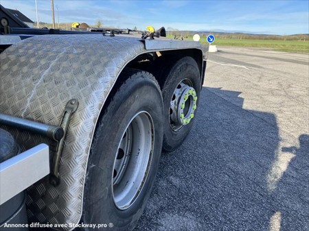 DAF CF 480 6X2-4 Moteur 13 litres 480 cv Dernier essieu releveur et directeur Bras Miltilift Hiab 20 tonnes avec potence coulissante, prise de mouvement arrière distribution permettant la manipulation du bras avec un rapport engagé, barre anti encastrement hydraulique permettant de prendre des caissons de 6.60 mètres, verrouillage arrière, panier à filets et coffre PVC. Crochet et mains de freins arrière. Véhicule vendu révisé et repassé aux mines avant mise à disposition.