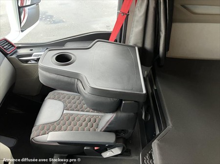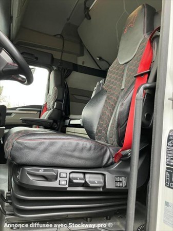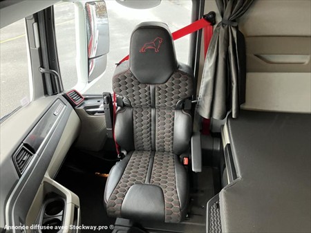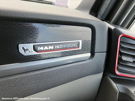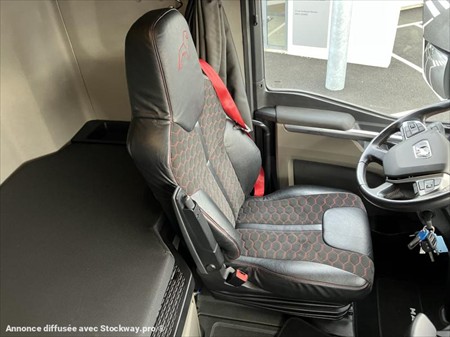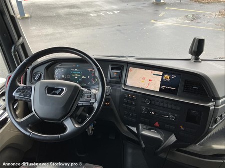 MAN TGX 18.520 INDIVIDUAL S Moteur 13 litres 520 CV. suspension intégrale air,. Principaux équipements extérieurs : Jantes alu dura Bright, doubles réservoirs, prise de mouvement pour groupe hydraulique, Carénage, prédisposition gyrophares et rampe de phares, Feux avant et arrières Leds. prise hayon, détecteur d'angles morts, prédisposition caméra. Principaux équipements intérieurs : Siège conducteur grand confort avec chauffage et ventilation, siège passager vario (voir photos), tablette rétractable, Boitier RIO pour informatique embarqué, Store électrique, Prédisposition télé, prise 12, 24 et 220 Volts, radio GPS grand écran avec Smart select, prise USB, double couchette avec télécommande en bas et commande fixe en haut, Clim de nuit, chauffage additionnel, basculement de cabine électrique, store pare-soleil sur porte, coffres de rangements sous couchette et frigo, volant multifonction cuir avec surpiqures rouges. Véhicule vendu révisé avec garantie MAN chaine cinématique jusqu'au 24/11/2026 où 450 000 kms et repassé aux mines avant mise à disposition.