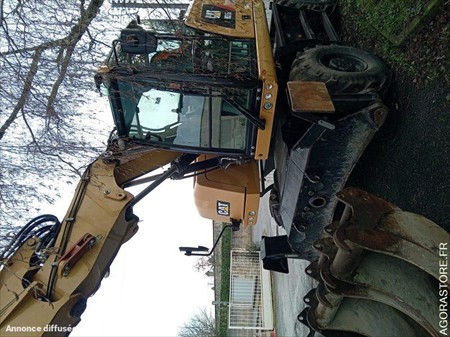 Pelle sur pneus CATERPILLAR vendue avec 3 godets Etat trains roulants Bons