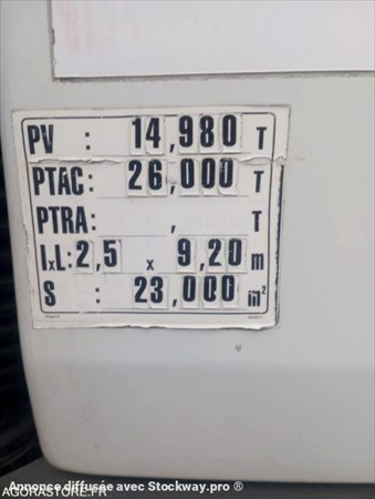 29CHB1 DC2 37E12 Taille des pneumatiques 295/80R22.5 PV / PTAC / PTRA 14980 / 26000 / 29500 Etat moteur boite pont ETAT MOYEN Carter moteur inférieur à remplacer (suintements) voyant boîte automatique au démarrage (de façon intermittente) Marque de la benne SEMAT n° C338-06 de 2011