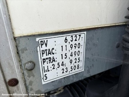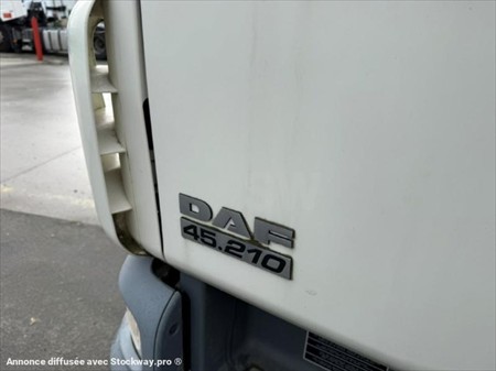 DAF LF 45.210 4x2 caisse hayon Dhollandia 1 ère M.E.C : 15/10/2013 Kilométrage : 461 031km Motorisation : 210ch Norme : Euro 5 Boîte de vitesse : manuelle 6 vitesses Essieux : 4x2 Suspension : lames AV et pneumatique AR Pneumatiques : 245/70R17.5 PV : 6T327 PTAC : 11T990 PTRA : 15T490 l x L : 2.54 x 9.25m Equipements : Caisse fourgon Dimensions utiles : 7.45m x 2.48m x H : 2.50m Hayon DHOLLANDIA rabattable : 1500kg Cabine : courte 2 places assises Autoradio CD Tachygraphe numérique Régulateur de vitesse Vitre électrique