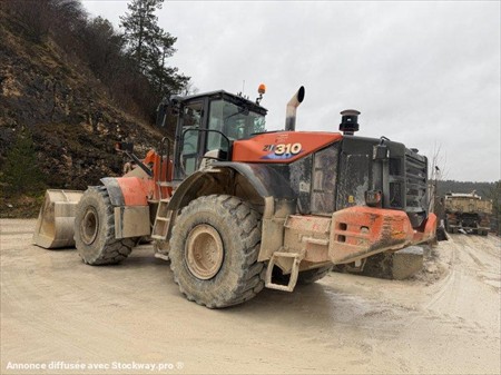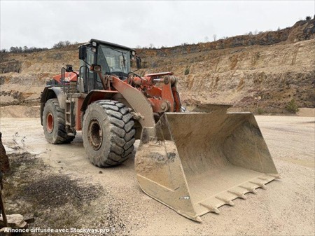 Chargeuse sur pneus HITACHI type ZW310-6 Année : 2017 Heures : 14500 Poids : 28 t Graissage centralisé - Pesage ASCOREL Pneumatiques : 26.5 R 25 Longueur en transport : 9.185 m Largeur en transport : 2.98 m Hauteur en transport : 3.53 m Hauteur max. de déversement : 2.995 m Moteur Cummins QSL9 (225 kW) Godet à dents de 4.3 m³
