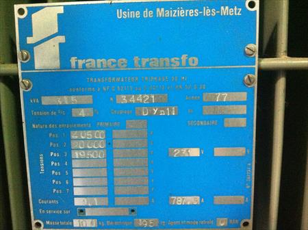 je vends deux transformateurs élévateurs de marque France Transfo : 1 315 kva 20000/230 de 1977 et un 630 kva 20000/230 de 1991