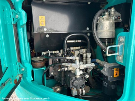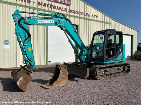 Kobelco SK85 MSR-3 Numéro de stock : 8008 Marque : Kobelco Modèle : SK85 MSR-3 Année : 2018 Heures : 1700h Numéro de série : CF08-06647 Poids : 8270kg Hauteur : 2m60 Largeur : 2m30 Longueur : 6m76 Chenilles : Fer + PADS Usure chenille droite : 20% Usure chenille gauche : 20% Nombre de godets : 3 2 Vitesses : Oui Moteur : Isuzu Accessoires : - Ligne auxiliaire - Attache rapide hydraulique - Climatisation Tarif vendu dans l’état : 48 000€ H.T (TVA à 20% récupérable pour les professionnels) Possibilité de matériel vendu révisé, vidangé et garantie pour un supplément de 51 000€ HT. Nous sommes une entreprise multimarques spécialisée dans le négoce de matériels TP et Agricoles dans les Deux-Sèvres. Une large gamme de produits est disponible sur notre parc : Mini pelle, chariot télescopique, dumper, remorques et autres matériels divers. Nous pouvons assurer des livraisons dans toute la France.