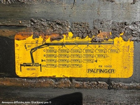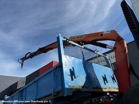RENAULT KERAX 320dci 4x2 Bi-benne et grue Palfinger pk10000 1ère M.E.C : 30/01/2004 Kilométrage : 180 437km Motorisation : 320dci Boîte de vitesse : Manuelle 8 rapports Essieux : 4x2 Pneumatiques : 13R22.5 Suspension Mécanique PV : 11.0T PTAC : 19T PTRA : 40T l x L : 2.55 x 8.19m Equipements : GRUE Palfinger PK10000 2 allonges hydrauliques : 1120kg à 8.0m Rotator Radiocommande 2 stabilisateurs Bi-benne ridelles FOREZ : 5m x 2.30m x 0.58m 2 Ridelles manuelle par côté Porte arrière 2 vantaux + basculante Bae escamotable manuelle Cabine : courte : 3 places Autoradio Ordinateur de bord