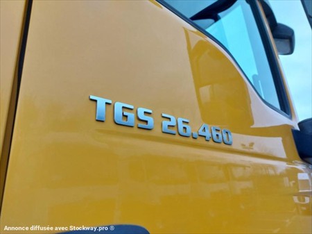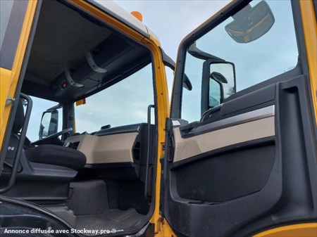 Équipement principaux : Pack électrique, climatiseur, assistant de trajectoire, toit ouvrant, cabine 2 places, siège à suspension, boîte automatique, Euro 6, Bras ampliroll MARREL, crochet, prise de force. Description détaillée : Ce MAN TGS est un camion fiable et robuste, idéal pour tout types de chantiers grâce sa capacité d'adaptation optimale. Son moteur Euro 6 permet de concilier performance et respect des normes environnementales le bras ampliroll intégré facilite le chargement et déchargement, tandis que la cabine spacieuse et les technologies embarquées garantissent un confort de conduite optimisé.