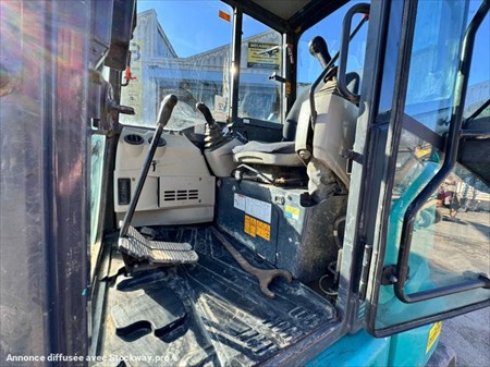 Mini pelle 4,5T Kobelco SK45SRX-6 N° de série : PH08-10770 Année 2016 - 3250 heures évolutives 3 godets: Curage + terrassement + tranchée Attache rapide mécanique à axe Ligne auxiliaire Portée maximale : 6,00 m Vitesse de translation : 4,0 km/h (haute) / 2,2 km/h (basse) Débit pompe hydraulique : 2 x 49,9 + 33,8 + 10,8 l/min Dimensions : Longueur : 5280mm Largeur : 1960mm Hauteur : 2530mm Largeur de chenilles : 400mm Largeur de lame : 1960mm x 345mm Poids : 4620 kg Moteur : Yanmar 4TNV88C-PYB 4 cylindres diesel à injection directe refroidi par eau 4 temps - Norme Tier IV Final Puissance moteur : 29,5 kW (37,4 CV) Lors de sa réception, un employé qualifié de DB EQUIPMENT a effectué un contrôle des éléments essentiels du matériel, et a pu constater : son bon fonctionnement général, chenilles à 50%, couronnes de barbotins en bon état, présence de chocs carrosserie. Ce matériel est disponible sur parc, et peut être essayé sur nos horaires d'ouverture sur simple rendez-vous. REPRISE ET LIVRAISON POSSIBLE Nous nous efforçons de publier des informations les plus précises possibles mais aucun droit ne peut être tiré des textes publiés.