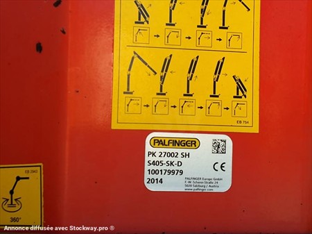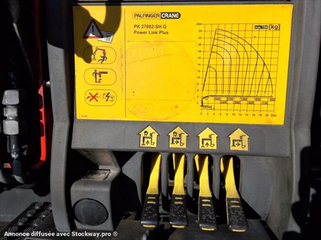GRUE PALFINGER PK27002SH DE 2014 3700 HEURES - 8 RALLONGES HYDRAULIQUES + TREUIL - 4 STABILISATEURS - RADIO COMMANDE - ROTATION CONTINUE - LEVE 650KG A 22M - PONT AVANT MECANIQUE + BOITE DE TRANSFERT - TURBO ET EMBRAYAGE CHANGES EN PREVENTIF A 623000KM - MOTEUR DTI 11 - FREIN VEB+ - CLIMATISATION