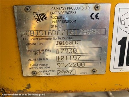 À vendre pelle sur chenilles JCB JS 160, machine fiable et performante, idéale pour travaux de terrassement et chantiers généraux. Année : 2007 8 950 heures d’origine Toutes lignes hydrauliques Ligne auxiliaire Attache rapide hydraulique Train de chaîne à 50 % Machine en bon état général À signaler : Le godet terrassement est fissuré (voir photo). Réparation à prévoir. Machine prête à travailler Fonctionne parfaitement Structure saine Visible sur rendez-vous Contact pour plus d’informations ou photos supplémentaires.