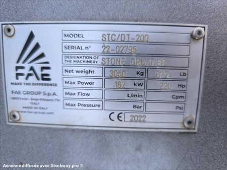 Broyeur, broyage, pierre, pierres Marque : FAE Modèle : STC/DT-200 Année : 2022 Poids : 3.050 Tonnes Matériel sur Prise de force largeur broyeur : 2.50 m largeur de rotor : 1.80 m Puissance : 162 kW Matériel en très bon état !