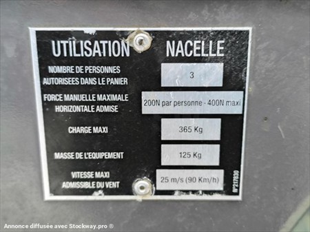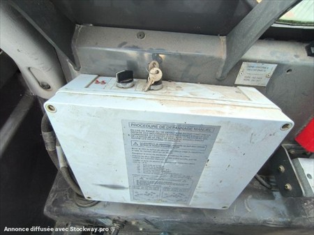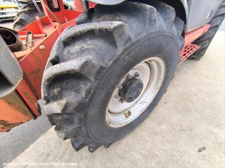 Manitou MT 1740 SLT ORH Nacelle Fourches Godet Année : 2005 Masse à vide : 11.2 Tonnes Hauteur de levage : 17.0m Capacité de levage : 4.0Tonnes Nombre d’heures : 3375 h au compteur Fourches incluses Transmission mécanique 4 rapports Flèche télescopique Attache rapide mécanique Stabilisateurs Ligne auxiliaire Monolevier Correcteurs dévers Clapets de sécurité avant Dimension des pneus avant : 15.5/80-24 BKT Dimension des pneus arrière : 15.5/80-24 BKT Moteur turbo 100 chevaux Enrouleur latéral Phare de travail Gyrophare Nacelle avec commande inclus Godet terre 2.40m inclus Fourches inclus Matériel en très bon état, tous les équipements inclus !