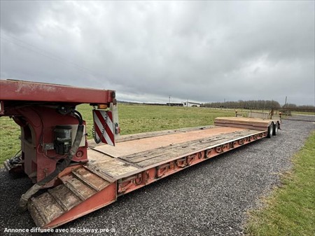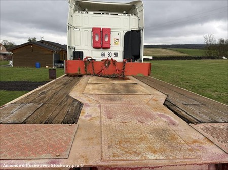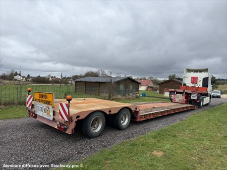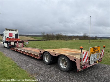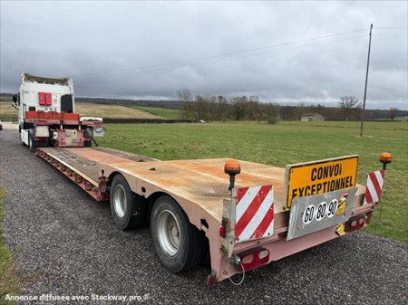 Semi-remorque Porte Engins FAYMONVILL déboîtable 2 essieux directionnels Date de mise en service : 09/02/1997 Châssis : YA9TL238G97113789 PTAC : 44 000 kg / P.V : 12 600 kg Autre F2 Possible : 44 000 kg Convois exceptionnels 2 Essieux BPW Essieux avant et arrière relevable Essieux directionnel avec télécommande Pneumatiques : 235/75 R17.5 Suspension : pneumatique Extensible sur les cotés Extensible de 4m par l’avant Réglable en hauteur Graissage centralisé Equipé pour 4 gyrophares Longueur : 15.66 m Largeur : 2.55 m Surface : 39 m2 Entretien récent : 8 pneumatiques neufs Bouteille d’air neuve Validité contrôle technique : 23/10/2026 Tous nos véhicules ne sont pas visibles sur parc, contactez-nous pour connaitre la localisation et convenir d’un rendez-vous. Solutions de financement clés en main avec nos partenaires de confiance. Certains véhicules peuvent encore être stickés, nous assurons l’anonymisation par logiciel. Reprise de votre véhicule possible – contactez-nous !