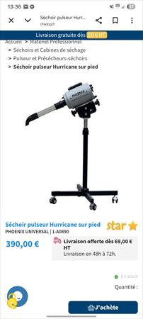 Bonjour, suite à 2 décès consécutifs, je ne vais pas donner suite à ma reconversion partielle en toilettage. Par conséquent, je revends une partie de mon matériel. Je vends ce séchoir/pulseur Hurricane Phoenix, état nickel, acheté le 27 octobre 25 et servi 5 fois. Il est encore sous garantie. La facture sera bien sûr fournie.