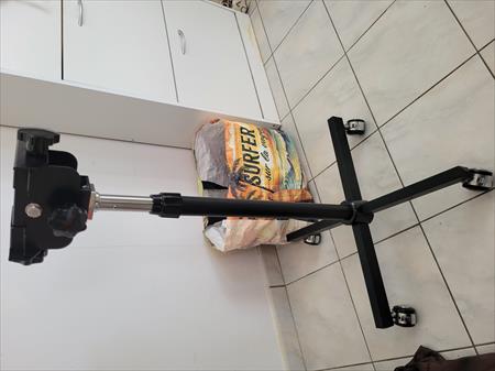 Pied réglable en hauteur, puissance et chauffe réglable (plus on augmente la puissance plus ça chauffe mais possibilité d’éteindre la fonction chauffage). Petit et compact mais puissant !