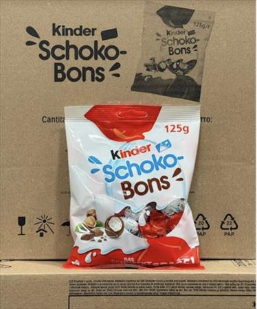 Kinder Cards T2x5 128g offer a unique and delicious tasting experience with two crispy cocoa and milk wafers filled with a smooth cocoa and milk center. Light, crispy, and flavorful, these individually wrapped treats are perfect for a tasty snack on the go or for adding a touch of sweetness to a lunchbox. With a total of 10 cards, Kinder Cards T2x5 128g combine renowned Kinder quality with a fun and innovative format, enjoyed by children and adults alike. Kinder Cards T2x5 128g EAN: 8000500269169 Product Category: Biscuit Packaging: Pieces Contents per piece: 0.128 kg Carton: 20 Cartons per pallet: 112 Pieces per pallet: 2240 Kinder Schoko-Bons 200g 43616 Kinder Schoko-Bons 200g offer a more generous size of milk chocolate bites filled with a smooth hazelnut and milk center. Each piece is individually wrapped, ideal for sharing or enjoying on the go. Kinder Schoko-Bons 200g are made with high-quality ingredients and contain no artificial colors or preservatives. Their smooth chocolate coating and crunchy hazelnut pieces offer a delicious taste and tactile experience, to the delight of young and old alike. Kinder Schoko-Bons 200g EAN: 5413548283128 Product Category: Chocolate Packaging: Bag, Case: 18 cases, Pallet: 56 pieces, Pallet: 1008